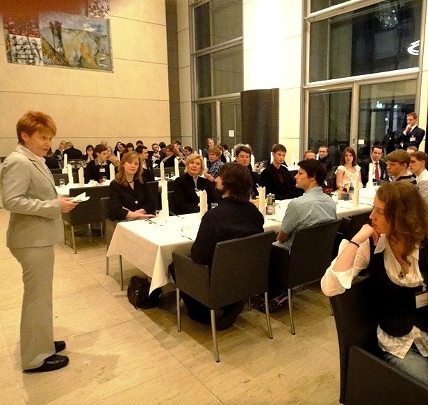 Erneut bietet der Bundestag für angehende Journalistinnen und Journalisten einen 6-tägigen Jugend-Medienworkshop an. Bürger, Parlament, Medien -Partizipation zwischen Facebook und Parteibuch ist das vielfältige Programm diesmal überschrieben. Petra Pau war heute als Vizepräsidentin Gastgeberin und Gesprächspartnerin beim Abendessen für die rund 40 Teilnehmer.
