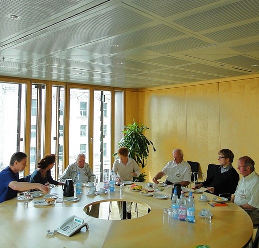Petra Pau, weitere Mitarbeiter des AK Bürgerrechte und Demokratie der Fraktion DIE LINKE sowie Zufallsgäste nahmen heute an einer Extraführung durch die Sonderausstellung Der Prozess - Adolf Eichmann vor Gericht in der Topographie des Terrors teil. Kurator Dr. Ulrich Baumann erinnerte an den historischen Prozess vor 50 Jahren und erläuterte das Ausstellungskonzept.
