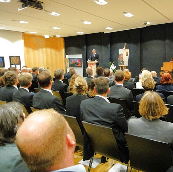 28. 09. 2011, Baden-Württemberg, Karlsruhe: Vor 60 Jahren wurde das Bundesverfassungsgericht gebildet. Dieses Jubiläum wurde heute im Badischen Staatstheater begangen. Petra Pau nahm als Vizepräsidentin des Bundestages teil. Bundespräsident Wulf kritisierte Tendenzen der Politik, parlamentarische Zuständigkeiten zu umgehen. BVerfG-Präsident Voßkuhle gab einen Aus- mit Rückblick.