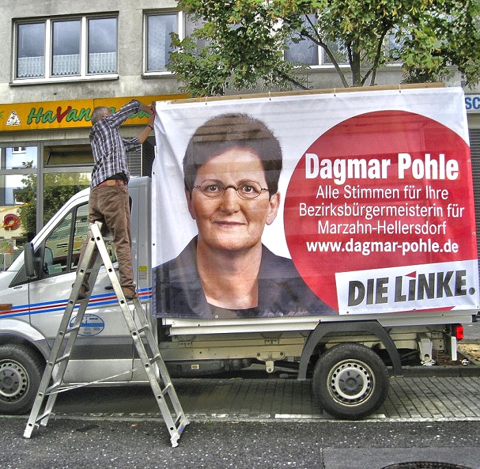 Heute wurden ein neues Abgeordnetenhaus und die zwölf Bezirksverordneten-Versammlungen gewählt. DIE LINKE schnitt landesweit schlechter ab, als erhofft. Petra Pau meldete sich per Video-Telefon aus Kiew im Marzahn-Hellersdorfer Links-Quartier. Im Bezirk gewann DIE LINKE vier von sechs Direktmandaten. Die BVV-Ergebnisse lagen zu dieser Zeit noch nicht vor.
