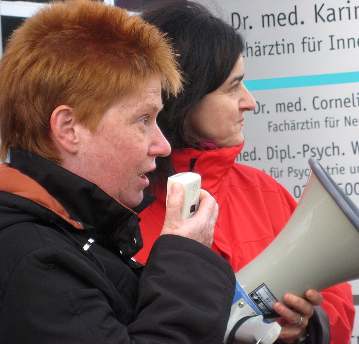 Bereits den 56. Tag streiken die Beschäftigten der Pflegeeinrichtungen Alpenland im Bezirk. Als Ostler erhalten sie rund 300 Euro monatlich weniger, als ihre Kolleginnen und Kollegen im ehemaligen Westteil der Stadt. Sie fordern gleichen Lohn für gleiche Arbeit. Petra Pau unterstützte sie heute auf einer Ver.di-Kundgebung erneut.