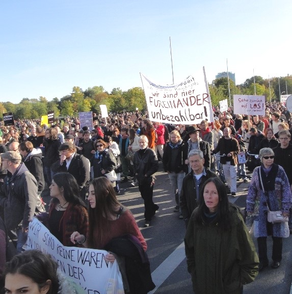 Seit vier Wochen demonstrieren in Washington (USA) Tausende unter dem Motto Occupy Wall Street gegen die herrschenden Finanzmärkte. Heute wurde der Potest auf knapp 950 Städte in 80 Staaten ausgeweitet. Auch in Berlin marschierten über zehntausend Kapitalismuskritiker und -kritikerinnen vom Roten Rathaus vor das Bundeskanzleramt. Petra Pau war dabei.