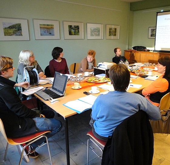 04. 11. 2011, Berlin, Marzahn-Hellersdorf: In einem weiteren Stadtteil-Zentrum setzten Petra Pau & Team die gestern begonnene Klausur fort. Mit den Bezirks- und Fraktionsvorsitzenden der LINKEN wurde die politische Lage vor Ort nach der BVV-Wahl am 18. September besprochen. Außerdem ging es um die Wahlkreisarbeit, auch mit Blick auf möglicherweise vorgezogene Bundestagswahlen.