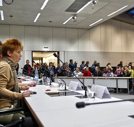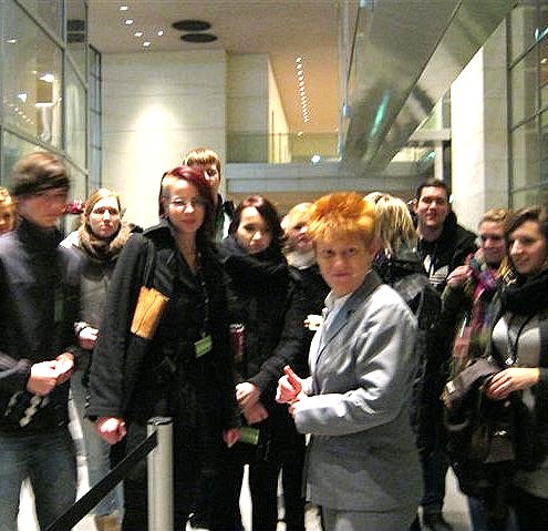 15. 12. 2011, Berlin, Bundestag: Abends besuchten Schülerinnen und Schüler der Tagore-Schule Marzahn heute den Deutschen Bundestag. Sie verfolgten die Plenardebatte zum Asylrecht und sie informierten sie sich im Gespräch mit Petra Pau über parlamentarische Abläufe, über die Aufgaben einer Vizepräsidentin und über ihre Wahlkreisarbeit. Auch die akute Krise der Demokratie war ein Thema.