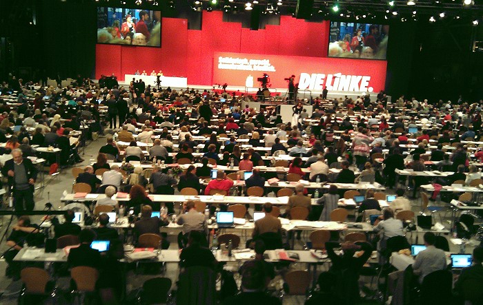 In der Lok-Halle komplettierten die Delegierten heute den insgesamt 44-köpfigen neuen Vorstand der Partei DIE LINKE. Außerdem wurden Berichte der Fraktionen im Bundestag und im EU-Parlament entgegengenommen. Derweil mangelt es nicht an Kommentaren über die Turbulenzen vom Vortag. (Eine Auswahl auf der Web-Seite ⇒ Lafontaines Linke)