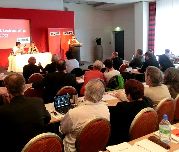 Die Delegierten des Landesparteitages der Berliner LINKEN berieten heute im Ramada-Hotel am Alex über Aufgaben nach dem Bundesparteitag in Göttingen. Zu Beginn der Generaldebatte stellte der neue Parteivorsitzende Bernd Riexinger sich und seine Sicht vor. Petra Pau ging in ihrem Diskussionsbeitrag auf die ungeklärte NSU-Nazi-Mordserie ein. (⇒ zur Rede)