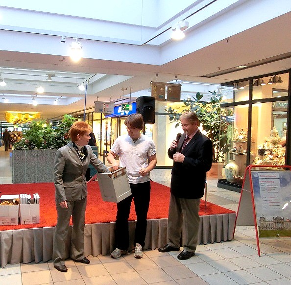 Heute war der vorletzte Tag für die Wanderausstellung des Bundestages im Spree-Center. Als zusätzliches politisches Angebot der LINKEN im Bund und in Berlin gab es Informationen zur Petitions-Praxis und zur Arbeit des NSU-Untersuchungsausschusses. Schließlich ermittelte Petra Pau gemeinsam mit dem Center-Manager die Quiz-Preisträger.