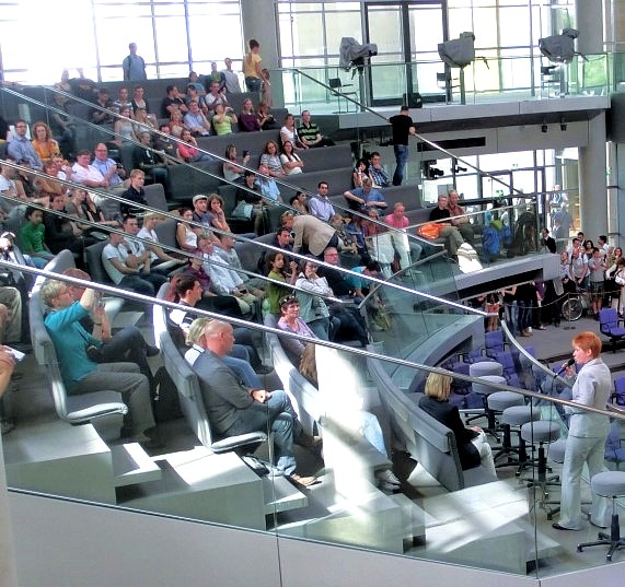 Mit einem Tag der Ein- und Ausblicke öffnete der Bundestag heute seine Türen für interessierte Bürgerinnen und Bürger. Als Vizepräsidentin erläuterte Petra Pau im Plenarsaal die Aufgaben des Präsidiums und die Geschäftsordnung des Bundestags, einschließlich Hammelsprung. Schwerpunkt am Stand der Fraktion DIE LINKE war der Plan B und die Euro-Krise.