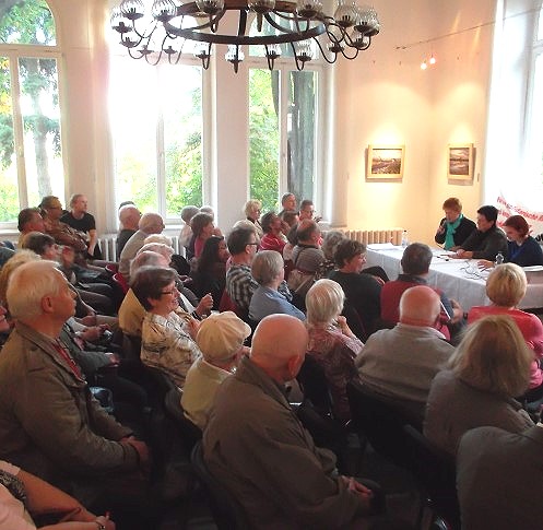 Der Versammlungssaal im Schloss Biesdorf war rappelvoll. DIE LINKE hatte zum Tag der Einheit geladen. Katja Kipping, Petra Pau und Dagmar Pohle sprachen für einen sicheren Lebensstandard - gegen Armut im Alter und stellten das Rentenkonzept der LINKEN vor. Petra Pau war direkt vom offiziellen Einheitsfestakt aus München angereist.