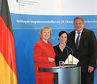 24. 10. 2012, Berlin: Im Bundeskanzleramt zeichnete heute die Integrationsbeauftragte Maria Böhmer acht Bürgerinnen bzw. Bürger mit der Integrationsmedaille aus. Damit geehrt wurde auch Asli Peker Gaubert aus Marzahn-Hellersdorf. Auf Einladung von Petra Pau besuchte sie danach den Bundestag, einschließlich einer Führung und Live-Beobachtung einer Plenardebatte.