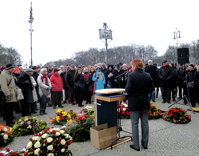 Auf dem Platz 18. März am Brandenburger Tor wurde heute wieder an die europaweite Revolution von 1848 erinnert. Leider konnte sich der Bundestag noch immer nicht durchringen, das Datum zum Gedenktag erheben zu lassen. Zu den Rednern aus Deutschland und Ungarn gehörte heute auch Petra Pau. Sie forderte eine neue Bewegung 18. März. (⇒ zur Rede)
