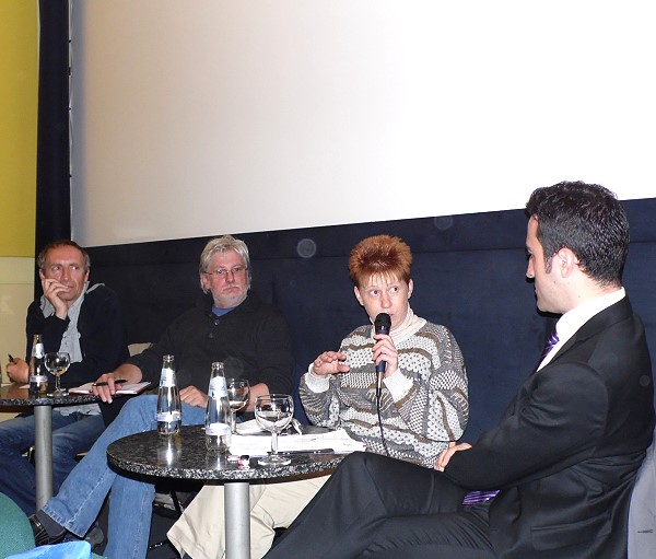 Auf dem verregneten Fest der LINKEN auf dem Rosa-Luxemburg-Platz lud die Tageszeitung neues deutschland zu einer Podiumsdiskussion über das NSU-Nazi-Desaster ins Kino Babylon. Mit dem Publikum debattierten Ulli Jentsch (apabiz), Yavuz Selim Narin (Opfer-Anwalt) und Petra Pau. Vordem war sie bei einem Treffen von Neumitgliedern der LINKEN.