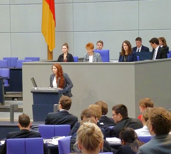 Seit Sonnabend nahmen wieder 312 Jugendliche aus allen Bundestags-Wahlkreisen an dem Planspiel Jugend im Parlament teil. Sie bilden Fraktionen, diskutieren in Ausschüssen und beraten fiktive Gesetze. Heute fand die abschließende Plenar-Sitzung statt. Sie wurde abwechselnd von den Vizepräsidenten des Bundestags geleitet, also auch von Petra Pau.