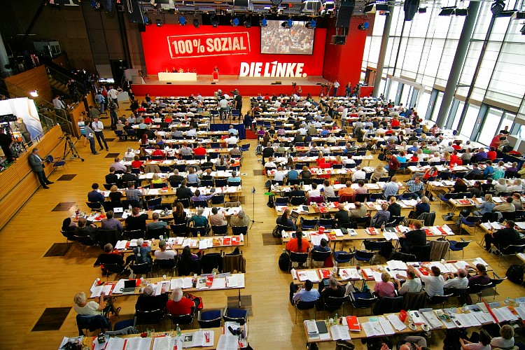 Der Parteitag der Partei DIE LINKE wurde im Internationalen Congress-Center fortgesetzt. Über mehrere hundert Anträge zum Wahlprogramm wurden diskutiert und entschieden. Die Medien erwarteten mit Spannung, ob die LINKE den Ausstieg aus dem Euro und die Rückkehr zur D-Mark anstrebt, wie von Oskar Lafontaine empfohlen. Das lehnte der Parteitag ab.
