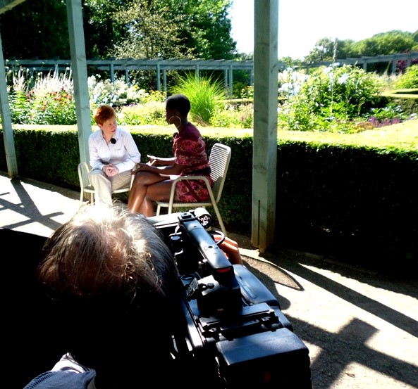 Etliche TV-Teams sind derzeit unterwegs, um Beiträge für die Sommerpause und danach zu drehen. Die ARD bereitet eine Spezial-Sendung zum NSU-Untersuchungsausschuss vor. Der rbb fängt Meinungen zu Senator Czaja ein. Danach ging es heute um eine Wahl-Werbe-Serie von Pro 7. Dazu plauderten Nikeata Thompson und Petra Pau in den Gärten der Welt miteinander.
