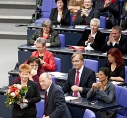 Heute konstituierte sich der 18. Deutsche Bundestag. Prof. Dr. Norbert Lammert wurde als Präsident wieder gewählt. Bei ihrer nunmehr dritten Wahl zur Vizepräsidentin kam Petra Pau mit 72 Prozent aller Abgeordneten auf ihr bestes Ergebnis. Im Interview der Woche für DIE LINKE mahnte sie danach eine generelle Demokratie-Reform an. (⇒ zum Interview)