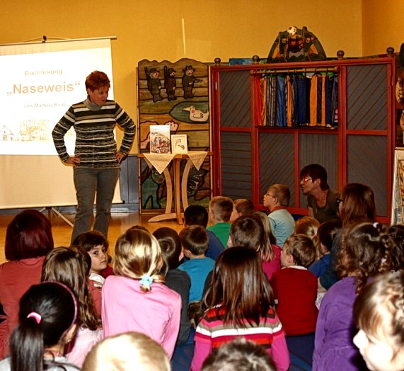 Zum heutigen Vorlesetag war Petra Pau in der Integrations-Kita Akazieninsel. Mitgebracht hatte sie das Buch Pferdchen Naseweis und zur Überraschung der Knirpse auch dessen Autorin. Sie las Geschichten, die Naseweis, das hinkende Kätzchen Minka oder Gertrud, die beschäftigte Brieftaube, erlebten und hatte obendrein raffinierte Zaubertricks parat.