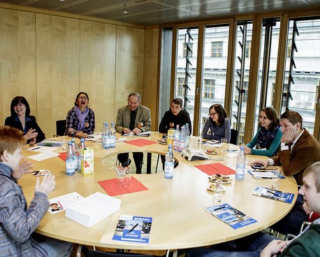 Eine Gruppe Journalistik-Studenten aus Bayern besucht zwei Tage lang den Bundestag. Heute hatten sie ein Gespräch mit Petra Pau. Darin ging es u. a. um die Aufgaben einer Vizepräsidentin, Antisemitismus in der Gesellschaft, die Opposition im Bundestag, die Partei DIE LINKE, die Rolle des Verfassungsschutzes sowie um den aktuellen NSA-Geheimdienst-Skandal.