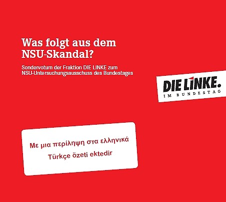 Am 2. September 2013 hatte der Bundestag den Abschlussbericht des NSU-Untersuchungsausschusses beschlossen. Er enthält 48 Konsequenzen aus dem NSU-Desaster, die ihrer Umsetzung harren. Eine Kurzfassung gibt es nunmehr auch in türkischer Sprache. Online ist inzwischen auch das Sondervotum der Fraktion DIE LINKE im Ausschussbericht.