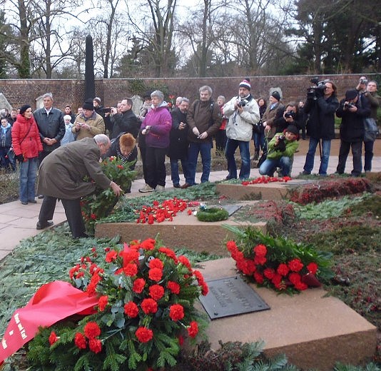 Zehntausende gedachten heute in der Gedenkstätte der Sozialisten in Friedrichsfelde wieder Rosa Luxemburg und Karl Liebknecht. Beide waren im Januar 1919 von einer Soldateska ermordet worden. Petra Pau und weitere legten zugleich Blumen am Gedenkstein für die Opfer des Stalinismus nieder. Zu ihnen gehörten auch viele deutsche Kommunisten und Antifaschisten.