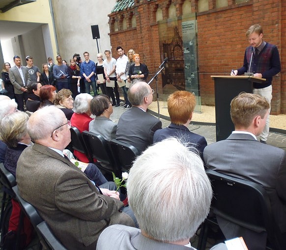Kulturstaatssekretär Timm Renner weihte einen Ort der Erinnerung an das Auerbach'sche Waisenhaus ein. Die dort beheimateten jüdischen Kinder und Jugendliche sowie ihre Betreuerinnen wurden 1942 von den Nazis deportiert und fast alle ermordet. Schülerinnen und Schüler der Kurt-Schwitters-Schule und der Phorms-Schule verlasen heute die Namen der Opfer.