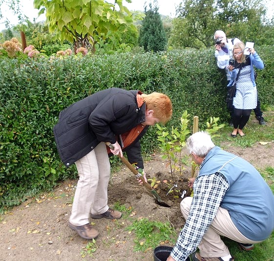 Am Fuße des Kienbergs fand heute ein Umwelt- und Gartenfest in Kooperation mit der IGA 2017 GmbH statt. Dabei wurden 25 junge Obstbäume prominent gepflanzt. Petra Pau half einer Kupfer-Felsenbirne in die Erde. Vormittags hatte sie eine Besuchergruppe aus ihrem Wahlkreis im Deutschen Bundestag zum politischen Gespräch empfangen.