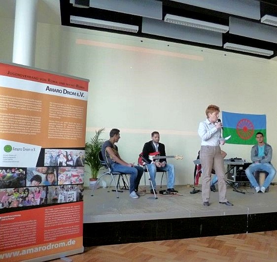 05. 10. 2014, Berlin: Dikhen Amen - Seht uns!, stand über einem Bundesjugendtreffen von Amoro Drom mit über 100 jungen Sinti und Roma. In Workshops und auf Podien entwickelten sie Strategien gegen den alltäglichen Rassismus. Auch Elke Breitenbach (LINKE) und Fabio Reinhardt (Piraten) waren dabei. Petra Pau kritisierte u. a. die jüngst beschlossene 'Lex Roma' im Asylrecht. (⇒ Video)