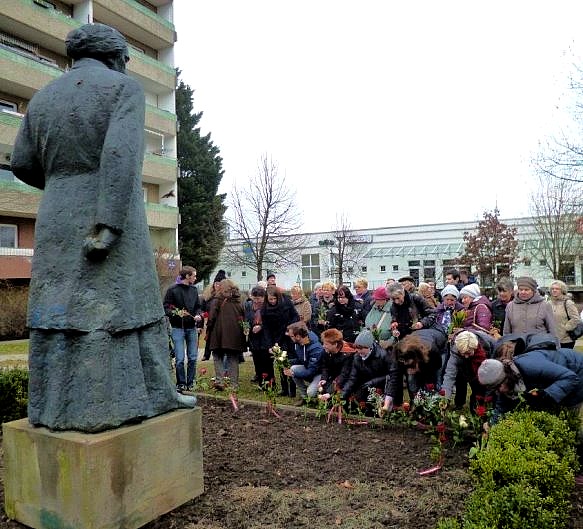 Traditionell begingen Frauen und Männer am Clara-Zetkin-Denkmal in Marzahn heute wieder den Internationalen Frauentag. Petra Pau berichtete aktuell aus der Debatte um Frauenquoten in Führungspositionen der Wirtschaft am Vormittag im Deutschen Bundestag. Außerdem sprach sie gemeinsam mit Björn Thielebein mit Jugendlichen über deren bedrohte Skaterbahn.