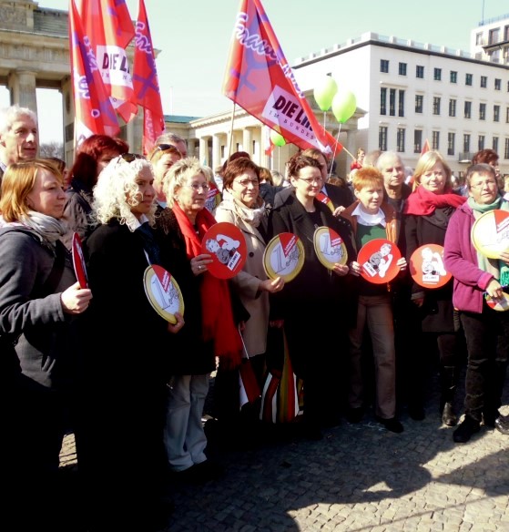 Frauen werden für gleichwertige Arbeit immer noch schlechter entlohnt als Männer. Dagegen protestierten zum Equal Pay Day am Brandenbuger Tor wieder Hunderte. Auch Petra Pau war wieder dabei. Rein rechnerisch wären Frauen heute, also in der zweiten Märzhälfte, auf die Lohn- bzw. Gehaltssumme 2014 gekommen, die Männer bereits am 31. 12. hatten.
