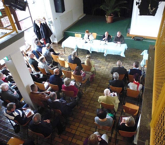 Mit ihrem Buch Gottlose Type war Petra Pau heute zur Lesung in der Cafeteria des Goethe-Gymnasiums. Im Gespräch mit dem Publikum, moderiert von Gisela Zimmer, ging es quer durch die Politik. Die Beschlussfassung über Hartz IV spielte dabei ebenso eine Rolle, wie das Versagen bei der NSU-Mordserie oder der Umgang der LINKEN mit steigenden Diäten.