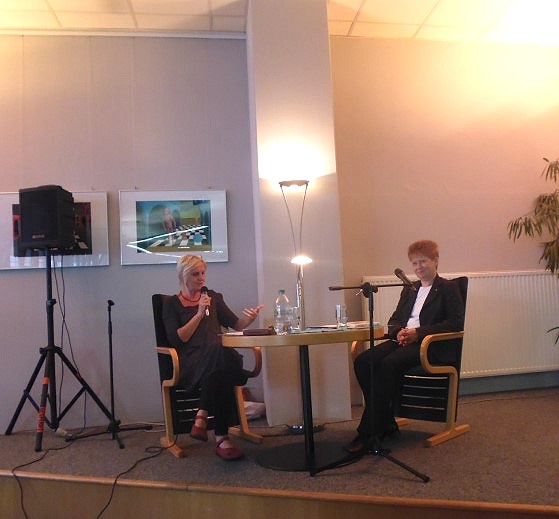Rund 50 Interessierte waren heute der Einladung der Peter-Weiß-Bibliothek ins Kulturforum Hellersdorf gefolgt. Petra Pau las aus ihrem Episoden-Buch Gottlose Type - meine unfrisierten Erinnerungen und sprach über aktuelle Politik. Auch Gottlose - Ungedrucktes trug sie vor, z. B. Schneller, höher, weiter gegen Berliner Olympia-Pläne.