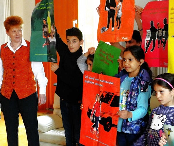 Auf Anregung der UNO befassen sich Kinder in der Aktion Hingucker mit ihren Rechten. Mit ihrem neuen Wissen entwarfen sie Plakate, die sie heute im Jugendclub U56#147; präsentierten, unterstützt von Künstlern und dem Kinder- und Jugendbüro. Ein Roma-Flüchtling reklamierte das Recht auf Muttersprache. Er wurde vorige Woche abgeschoben.