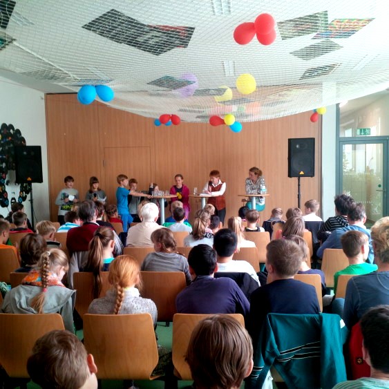 Auf Initiative der Jugendeinrichtung TreibHaus sprach Petra Pau heute mit aufgeweckten Schülerinnen und Schülern dreier 5. Klassen. Ihr hochaktuelles Thema war Kinderrechte und Flüchtlinge. Danach nahm sie bei Mittendrin e. V. an einem Pressefest teil. Anlass war die 100. Ausgabe der Kiez-Zeitschrift Mit-Wisser, die druckfrisch vorlag.