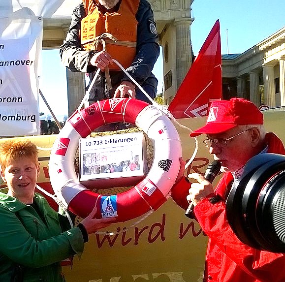 Wer Rentner quält, wird nicht gewählt! Unter diesem Motto protestieren seit Wochen Seniorinnen und Senioren gegen fallende Altersbezüge bei längerer Lebensarbeitszeit. Unterstützt werden sie u. a. durch die IG Metall und DIE LINKE. Heute fand dazu eine Kundgebung auf dem Pariser Platz statt. Petra Pau nahm für den Bundestag 10777 Unterschriften entgegen.