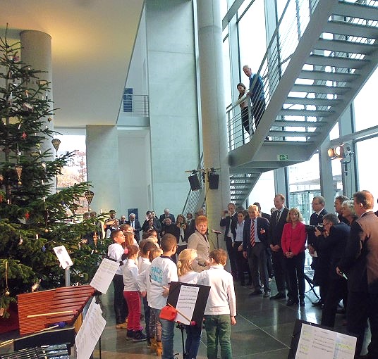 Im Marie-Elisabeth-Lüders-Haus nahm Petra Pau heute als Vizepräsidenten einen festlich geschmückten Weihnachtsbaum entgegen. Er stammt aus dem Naturpark Sauerland-Rothaargebirge und wurde biologisch angebaut. Kulturell begleitet wurde die Übergabe durch den Chor der Spandauer Grundschule und durch das Märkische Jugend-Sinfonieorchester von ebenda.