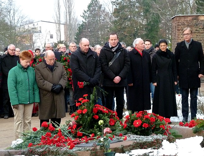 1919 wurden Rosa Luxemburg und Karl Liebknecht ermordet. Daran wird jährlich am 2. Sonntag im Januar erinnert. Erneut kamen Zehntausende zum Friedhof der Sozialisten in Friedrichsfelde, um sie zu ehren. Petra Pau und andere verneigten sich auch am Gedenkstein für die Opfer des Stalinismus. Danach war sie beim Neujahrsempfang der Rosa-Luxemburg-Stiftung.