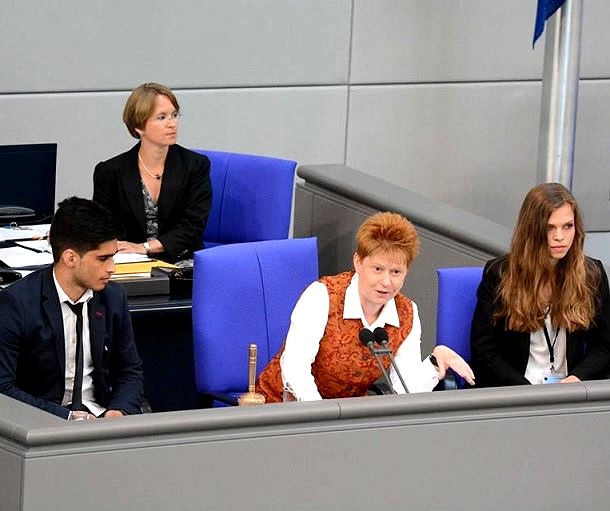 Seit Sonnabend bis morgen spielen 300 Jugendliche aus dem gesamten Bundesgebiet wieder Parlamentarier. Sie gehören fiktiven Fraktionen an, sie basteln an Gesetzentwürfen, sie streiten in Fachausschüssen und sie debattieren im Plenum. Letzteres unter Leitung realer Mitglieder des Präsidiums. So leitete auch Petra Pau heute eine Abstimmung.