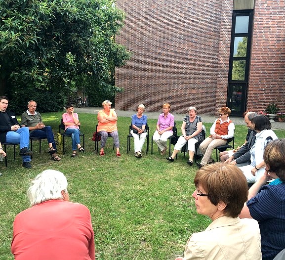 Beim Gottesdienst zu den Jubiläumsfeiern in der evangelischen Gemeinde Marzahn/Nord wurde an das Schicksal von Russlanddeutschen unter Stalin erinnert und gebeten, daraus helfende Lehren für den aktuellen Umgang mit Flüchtlingen zu ziehen. Danach war Petra Pau erneut Gesprächspartnerin beim Sommerfest im Jüdischen Gymnasium Moses Mendelssohn.