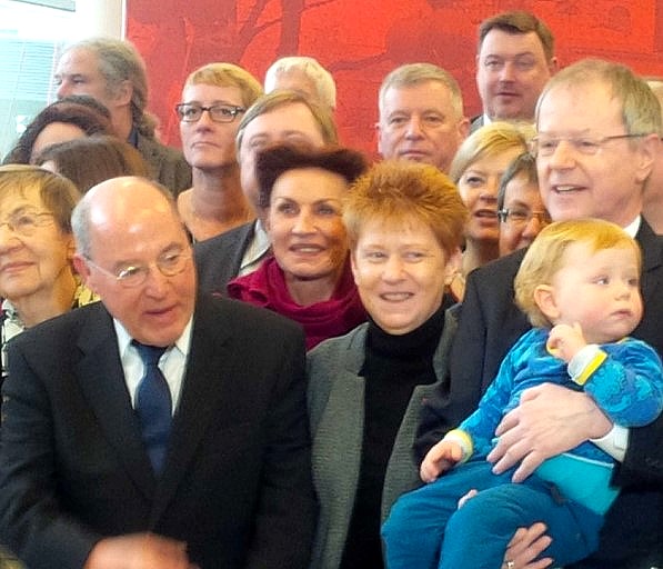 Auf Einladung von Bürgermeister Ottmar Hirschbichler (CSU) trug sich Petra Pau heute in das Goldene Buch von Markt-Wallersdorf ein. Außerdem besuchte sie dort ein Flüchtlingsheim und traf sich mit Sprachförderern. Auf Einladung der regionalen LINKEN las sie abends im Dingolfinger Museum vor Publikum Anekdoten aus ihrem Buch Gottlose Type.