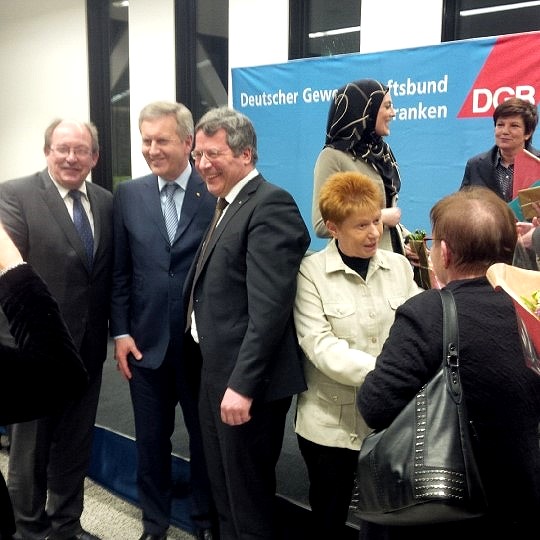 Mehr als 200 Interessierte folgten der Einladung des DGB zur Debatte Gehört der Islam zu Deutschland?, u. a. mit Bundespräsident a. D. Christian Wulff. In der Debatte ging es alsbald um die Stärkung der Demokratie und die Abwehr von Menschenfeindlichkeit. Vordem hatte Petra Pau das jüdische Gemeinde- und Kulturzentrum Shalom Europa besucht.