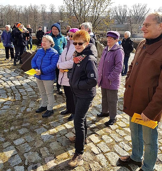 Zum 3. Mal fand heute der Marzahner Osterweg für Ehrfurcht vor dem Leben - solidarisch unterwegs - Respekt vor der Würde des Menschen statt. Rund 100 Leute, auch Petra Pau, starteten am Stadtteilzentrum Marzahn-Mitte. Stationen waren auch die katholische und die evangelische Kirche. Final gab es an der Marzahner Mühle Kartoffelsuppe aus der Küche von Don-Bosco.