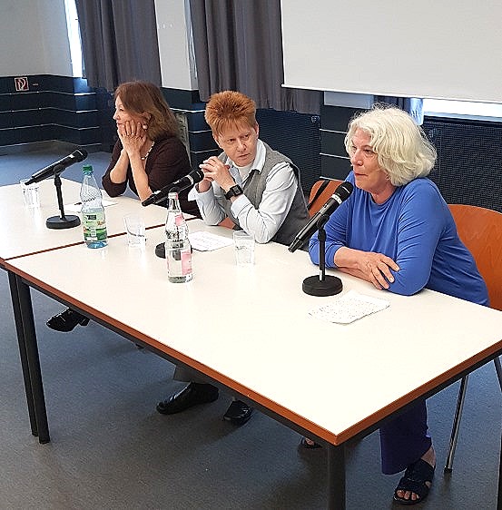 Streitraum heißt eine Gesprächsreihe in der Schaubühne, moderiert von der Publizistin Carolin Emcke. Das Thema heute hieß: NSU - was wissen wir am Ende des Gerichtsverfahrens? Auf dem Podium agierten Antonia von der Behrens (Anwältin), Anette Ramelsberger (Journalistin) und Petra Pau. Von rückhaltsloser Aufklärung könne keine Rede sein, kritisierte diese die Kanzlerin. (⇒ video)