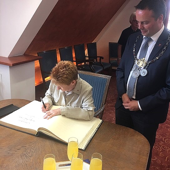 07. 08. 2018, Bayern: Seit Jahren begeht Petra Pau einen Urlaubstag mit der LINKEN Allgäu, heute in Kempten. Mit ihrer MdB-Kollegin Susanne Ferschl war sie erst im Rathaus beim Bürgermeister, dann in einem Seniorenpflegeheim. Danach gab es im Gewerkschaftshaus ein Forum über sozialpolitische Fragen. Schließlich las sie bei Tobias Dannheimer aus ihrem Buch Gottlose Type.