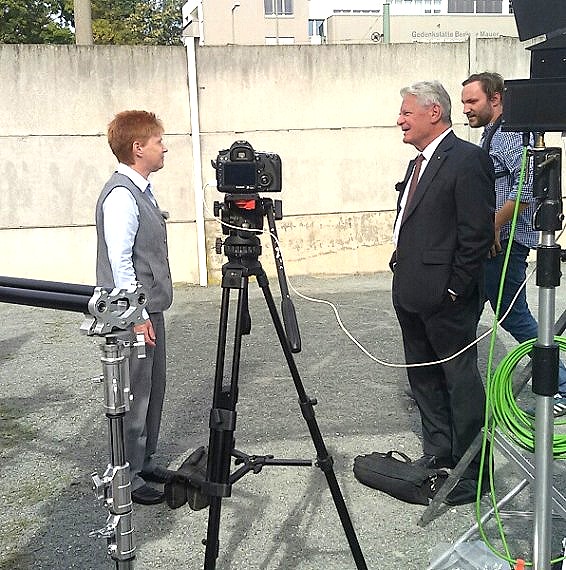 In der Mauer-Gedenkstätte Bernauer Straße wurde heute ein Gespräch von Joachim Gauck mit Petra Pau aufgezeichnet. Nachmittags war sie beim Empfang 40 Jahre Geschichten-Lieder - Kunst für Kinder im Haus Lakomy. Schließlich war sie Gesprächsgast Unter den Linden beim Sender Phoenix. Thema: Abgrenzung - Die liberale Gesellschaft und der Extremismus. (⇒ Sendung)