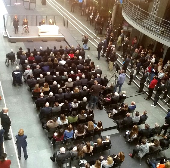 31. 01. 2019, Berlin: Der Bundestag gedachte heute der Opfer des Faschis- mus. Zudem wurde die Holocaust-Ausstel- lung Einige waren Nachbarn eröffnet. Im Centrum Judaicum sah Petra Pau den Film Synagoge mit der goldenen Kuppel. Und sie führte im Plenum einen Antrag der LINKEN ein. Demnach dürfen hierzulande von Gewalt betroffene Asylbewerber nicht abgeschoben werden. (Rede: ⇒ Text / ⇒ Video)