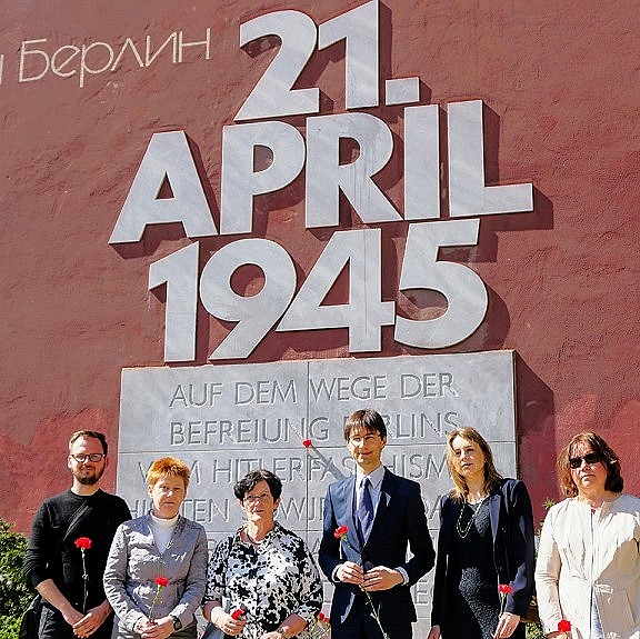 Im April 1945 war die Sowjetarmee auf dem Vormarsch nach Berlin. Am 21. April erreichten sie das erste Haus, und zwar in Marzahn. Darauf verweist die Giebelschrift 21. April 1945. Auch heute erinnerten daran und an die Befreiung vom Faschismus wieder Bürgerinnen und Bürger, unter ihnen Bezirksbürgermeisterin Dagmar Pohle und Petra Pau.