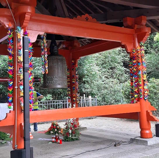 Am 6. August 1945 warfen die USA eine Atombombe über der Stadt Hiroshima ab, drei Tage später eine weitere über Nagasaki. Es war eine militärische Machtdemonstration. Hunderttausende Japanerinnen und Japaner starben sofort, ebenso viele später an den Folgen der Verstrahlung. Daran wurde heute an der Weltfriedensglocke erinnert. Petra Pau nahm an der Mahnung teil.