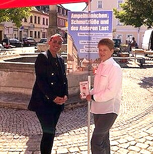 Auf Einladung der Spitzenkandidatin der Linken zu den Landtagswahlen am 1. September 2019, Kathrin Dannenberg, war Petra Pau heute in der Lausitz. Sie las Episoden aus ihrem Buch Gottlose Type - meine unfrisierten Erinnerungen, sowie neue Geschichten, die es bislang nicht gedruckt gibt. Hernach wurden wieder Bücher gekauft und von Petra signiert.