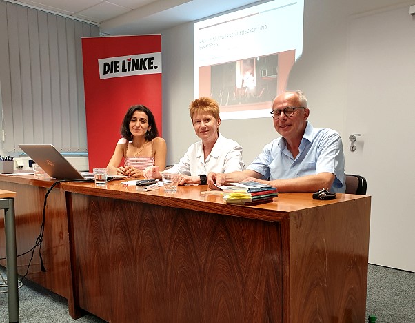 In ihrem Marzahn-Hellersdorfer Wahlkreisbüro empfing Petra Pau heute ein Journalistenpaar aus München zum Gespräch. Sie arbeiten derzeit an einem Buch über Antisemitismus in Deutschland. Abends war sie beim Sommerfest der Linken im Berliner Abgeordnetenhaus im Festsaal Kreuzberg. An ihm nahmen mehrere Hundert Partner, Journalisten und weitere Gäste teil.