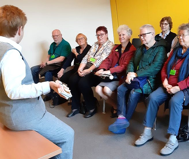 Eine Seniorengruppe besuchte heute den Bundestag, sie wohnten der Plenardebatte bei, fuhren unter die Kuppel und hatten dazwischen ein Gespräch mit Petra Pau. Die erläuterte ihnen unter anderem die drei Aufgaben einer Vizepräsidentin des Deutschen Bundestags. Außerdem hatte Nele H. das Finale ihres Praktikums im Pau-Team.